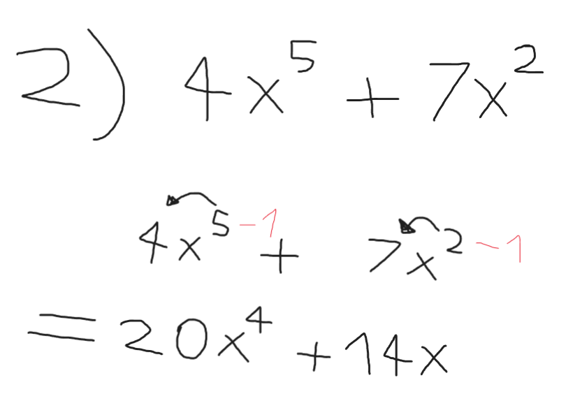 ببساطة الإشتقاق كالآتي , هي نقل الرقم في الأس قبل المتغير وطرح 1 من قيمة الإكس