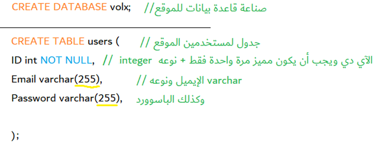 وهو لإنشاء جدول جديد في قاعدة البيانات بشرط وضع الحقول الخاصة فيه وأنواعها