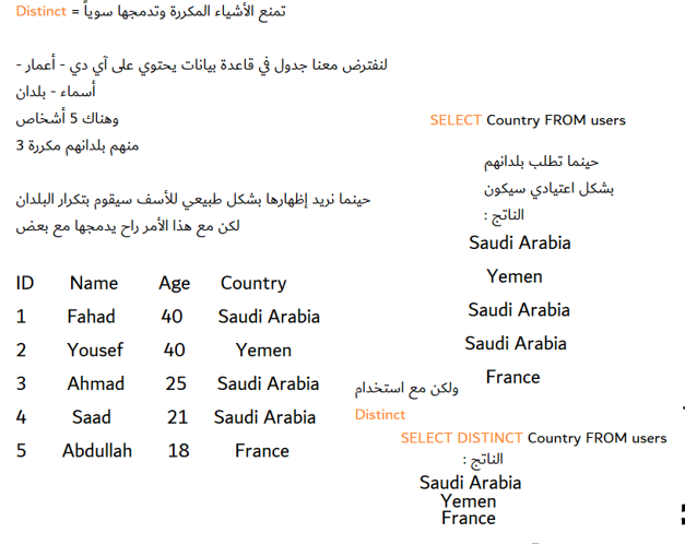 لمنع النتائج المكررة وتضاف بعد أمر SELECT